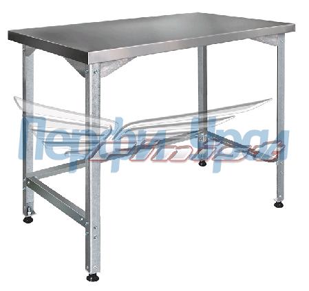 Каркас - гнутый угловой профиль, из нержавеющей стали. Столешница из нерж.стали марки AISI 430 Опорные подпятники с регулируемыми полиамидными опорами. В комплекте : обвязка по 3-ем сторонам .Content for class "cl" Goes Here