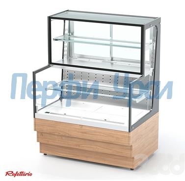 Кондитерская витрина торговой марки Refettorio . Витрина комбинированная с охлаждаемой столешницей и внутренним охлаждаемым объемом открытого и закрытого доступа к продуктам, предназначена для эффектной демонстрации и хранения кондитерских изделий и десертов при температуре от +2 C до +8 C. Класс кондитерской витрины среднетемпературный. В витрине имеется лоток для сбора конденсата с автоматическим выпариванием. Размещение пищевых продуктов полочное, четырёхъярусное. Доступ к продуктам в верхней части витрины осуществляется со стороны рабочего персонала с помощью раздвижных створок, в нижней части со стороны потребителя, доступ открытый. Имеет освещение рабочей зоны над каждой полкой. В стандартный комплект фасады не поставляются (доп. опция). Ширина витрины указана с боковыми стеклами и винтами крепления.