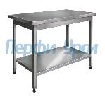 Стол 540х700х850(895)мм, со сплошной полкой, борт, каркас труба нерж