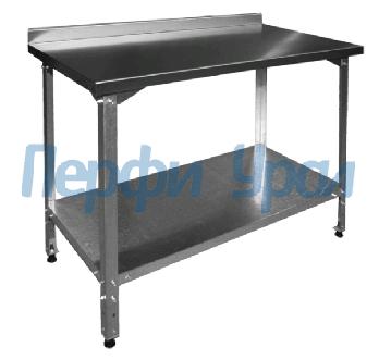 Каркас - гнутый угловой профиль, из нержавеющей стали. Столешница из нерж.стали марки AISI 430 Опорные подпятники с регулируемыми полиамидными опорами. В комплекте : сплошная полка из нержавеющей стали. Борт по задней стороне.