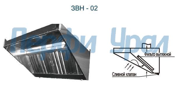 Зонт вытяжной 1050x760x350, без фильтров, задняя стенка нерж. сталь