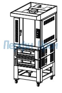 Комбинированная печь состоит из: 1.Конвекционной газовой печи с пароувлажнением. Вместимость- 5 противней (40х60см). Расстояние между противнями - 9,5 см. Площадь выпечки - 1,2 м кв. Максимальная температура печи 300С. 2. Двух электрических подовых печей, под из нержавеющей стали (опционально-керамический под ) , камеры без увлажнения ( опционально парогенератор). Вместимость 2 противня 40х60см. 3. Подставка 4.Вытяжной зонт. 5.Набор для установки модулей. Противни для выпекания приобретаются отдельно.Content for class "cl" Goes Here