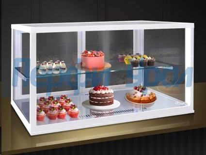 Встраиваемая кондитерская витрина с промежуточной полкой.Температурный режим 0 +7С. Высота стеклянного купола 600 мм. Корпус и зона выкладки зеркальная нержавеющая сталь, стеклопакет 16 мм. Двери-купе с 2-х сторон. Освещение осуществляется с помощью светодиодной подсветки ( на выбор 6000К, 4000К, 3000К). (на изображении двери с 1 стороны)Content for class "cl" Goes Here