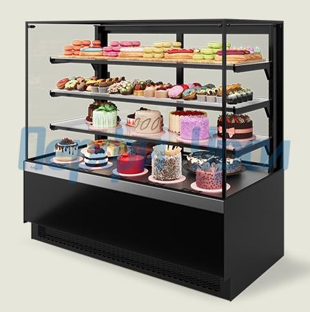 Витрина кондитерская, температурный режим: +1...+10. Контроллер AFROST ECS-974 с двумя датчиками. Наружный стайлинг. Нержавейка шлифованная. Освещение LED WHITE 4000K. Тип хладагента R290. Оформление верхних элементов RAL7016 муар (серый матовый). Оформление внутреннее G033 Металлик. Оформление нижних элементов RAL7016 муар (серый матовый).Content for class "cl" Goes Here