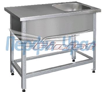 Ванна 790х700х850(895) с рабочей поверхностью справа, 1 цельнотянутая мойка 500х400х250 , отв смес, сплошная полка нерж, каркас уголок нерж.