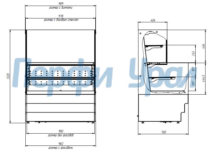 Холодильная витрина, комбинированная, боковые стеклопакеты, лицевой фасад