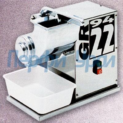 Терка для сыра и хлеба. Выполнена из алюминиевого сплава с анодным окислением и нерж. стали в зоне контакта с продуктом. Ролик полностью извлекается для удобства промывки. Пластиковый поддон для продукта. Низковольтажный выключатель. 1 скорость.