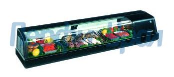 Витрина HNC-120A производства Hoshizaki (Нидерланды), предназначена для временного хранения, демонстрации и реализации блюд японской кухни, черного цвета. Возможны варианты с охлаждающим блоком справа и слева. Вентиляционное охлаждение. Конструкционный материал: внутренние поверхности - стекло, пластик, нерж. сталь; отделка витрины - оцинкованая сталь. Стеклянная фронтальная панель со скругленными углами. Витрина укомплектована решетками для выкладываемых продуктов. Изоляция - полиуретановая пена. Максимальная температура окружающей среды 27`С. На фронтальной стороне витрины - дренажный желоб диам. 2,5см. Внутренние размеры 845х288х157 мм. Задняя стенка состоит из 2-х скользящих секций. Расположение агрегата определяется со стороны клиента.Content for class "cl" Goes Here
