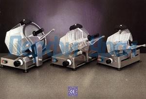 Ломтерезка наклонная профессиональная из нерж. стали, поверхность из алюминиевого сплава в зоне контакта с пищей,точильный блок закрепляемый сверху, защитное кольцо ножа, легкосъемный нож, низковольтный выключатель