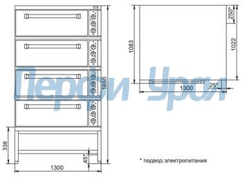 Пекарский шкаф ЭШ-4К Чувашторгтехника четырехсекционный предназначен для выпечки хлебобулочных изделий, запекания кулинарных и кондитерских изделий. Каждая секция вмещает 24 хлебные формы Л7. Шкаф используется на предприятиях общественного питания как самостоятельно, так и в составе технологических линий. Пекарные шкафы ЭШ имеют раздельную регулировку мощности верхнего и нижнего блоков ТЭНов. Рабочий диапазон температуры 20-2700С. Установленный аварийный терморегулятор предохраняет шкаф от перегрева свыше 3000С. Шкаф имеет крашенные порошковой краской подставку, боковые и заднюю облицовку, а также регулируемые по высоте ножки. Дополнительно, с этим товаром покупают расстоечную камеру ШРТ-4ЭШ или ШРТ-6ЭШ, на которую можно установить пекарский шкаф вместо подставки.