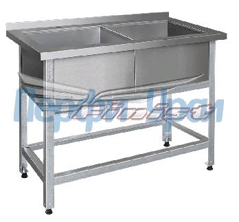 Ванна моечная 2 сварные мойки, 1200х700х850(895)мм, отв. смес, борт, каркас уголок оцинк.