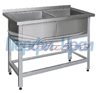 Ванна моечная 2 сварные мойки, 1400х600х850(895)мм, отв. смес, борт, каркас уголок оцинк.