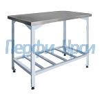 Каркас - гнутый угловой профиль, из крашенной стали.Столешница из нерж.стали марки AISI 430 Опорные подпятники с регулируемыми полиамидными опорами. В комплекте : полка решетка из крашенной стали.Content for class "cl" Goes Here